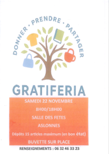 - samedi 22 : gratiferia – salle des fêtes